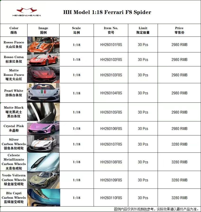 PREORDER Henson & Heaven 1:18 Ferrari F8 Spider